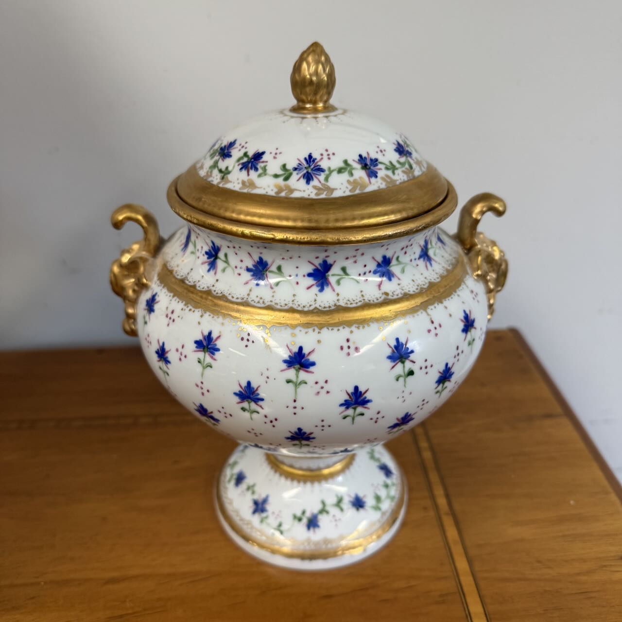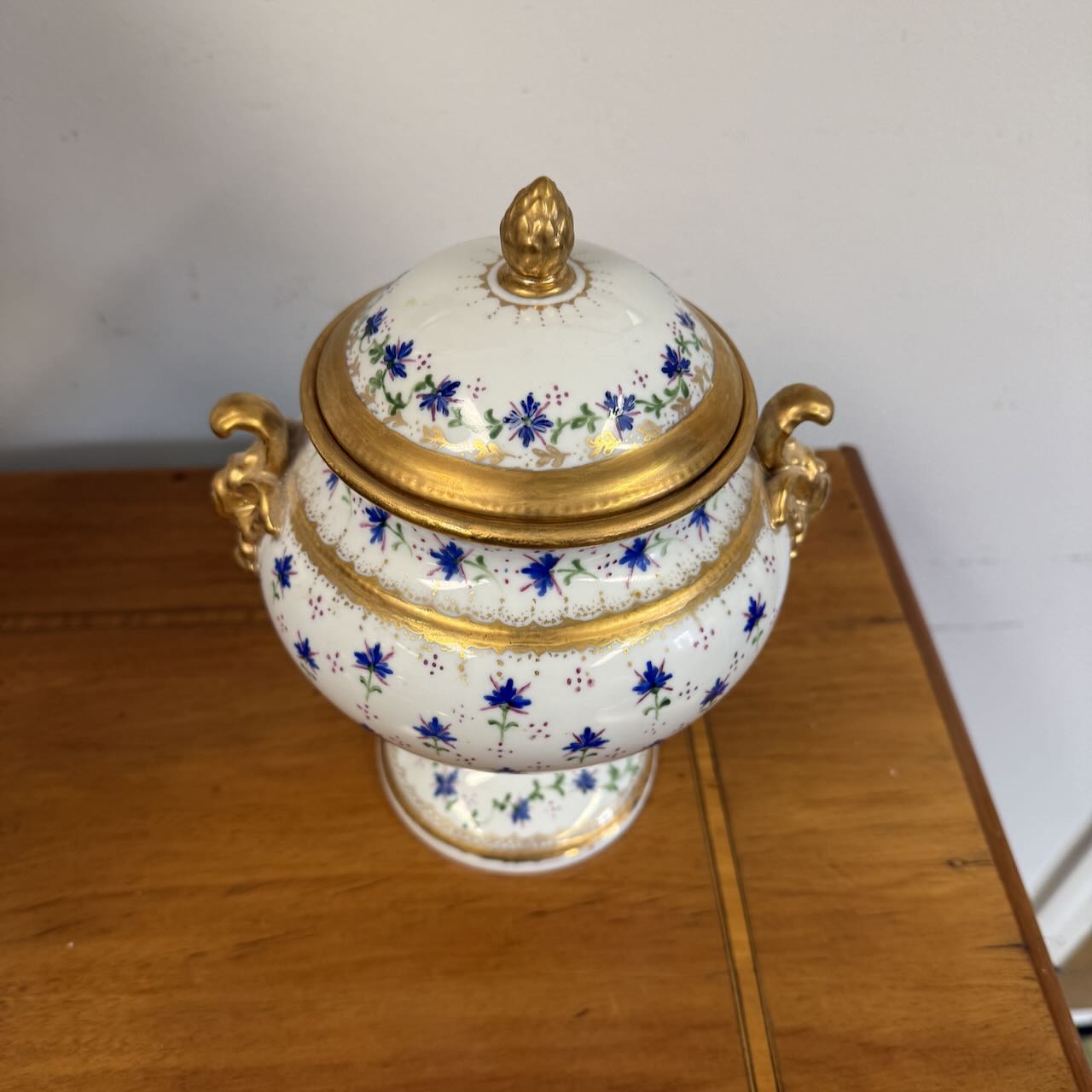19th century tureen featuring bar beaux pattern with gilt highlights